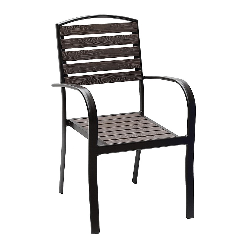 Πολυθρόνα εξωτερικού χώρου βαρέως τύπου, κατασκευασμένη από ενισχυμένο αλουμίνιο και polywood υψηλής ποιότητας και ανθεκτικότητας στον χρόνο. Ο σκελετός προσφέρεται σε μαύρο χρώμα και η πλάτη με το κάθισμα σε απόχρωση σκούρο καφέ. Το polywood αποτελείται από 100% ανακυκλώσιμο πλαστικό υλικό σε απομίμηση ξύλου, δίνοντας μία ευχάριστη νότα στον χώρο που θα τοποθετηθεί. Ιδανική επιλογή για προσωπικό ή επαγγελματικό χώρο καθώς μπορεί εύκολα να εναρμονιστεί με την υπάρχουσα διακόσμηση και να χαρίσει στιγμές ανάπαυσης και χαλάρωσης.