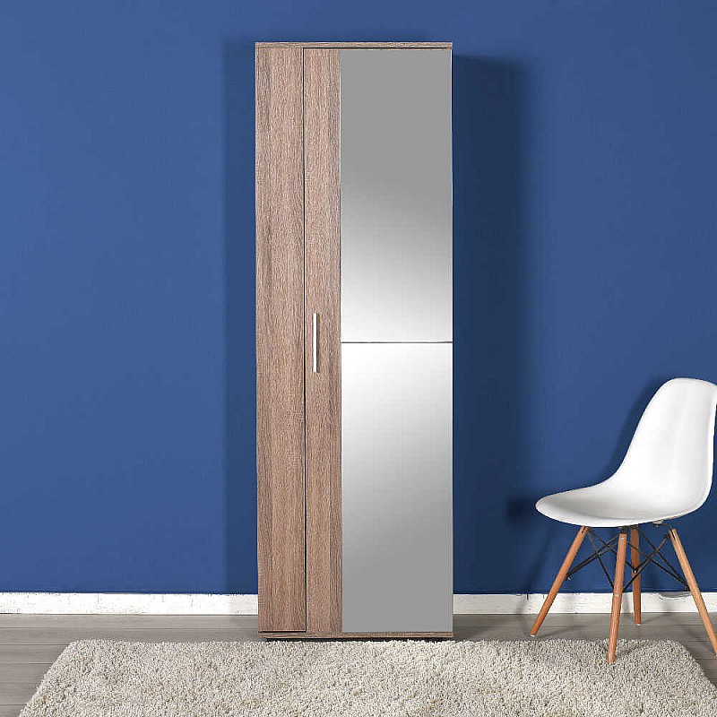 Ντουλάπα-παπουτσοθήκη κατασκευασμένη από ενισχυμένο σκελετό μελαμίνης άριστης ποιότητας και ανθεκτικότητας σε χρώμα latte. H ντουλάπα διαθέτει 9 ράφια για να ορανώσετε τα παπούτσια σας και εξωτερικά έναν ολόσωμα καθρέπτη. Μία πρακτική επιλογή για την είσοδο του σπιτιού σας.
