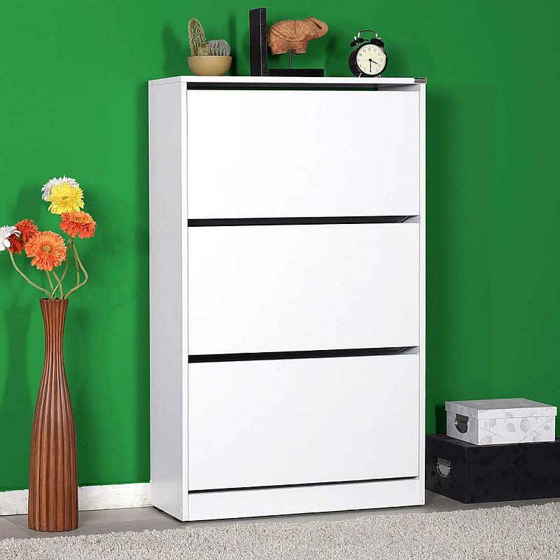 Παπουτσοθήκη τριών θέσεων κατασκευασμένη από μελαμίνη υψηλής ποιότητας και ανθεκτικότητας στον χρόνο σε χρώμα λευκό high gloss. Η παπουτσοθήκη διαθέτει τρία χωρίσματα διπλά για 18 ζευγάρια παπούτσια . Ιδανική και κομψή επιλογή τόσο για τον προσωπικό όσο και για τον επαγγελματικό σας χώρο καθώς μπορεί εύκολα να εναρμονιστεί στην υπάρχουσα διακόσμηση.