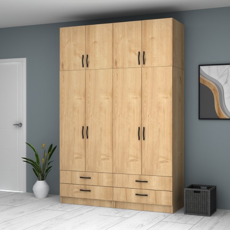 Ντουλάπα ρούχων Ricardo Megapap τετράφυλλη με πατάρι και συρτάρια χρώμα φυσικό οξιάς 160x51,8x240εκ.